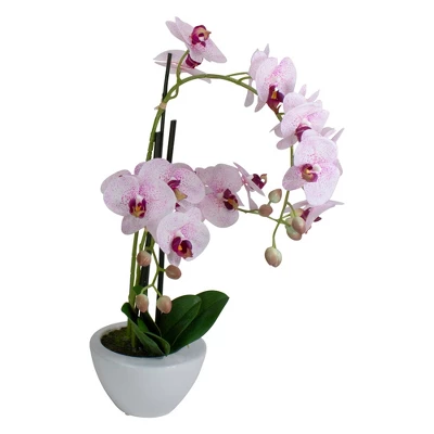 Elegantly add some color to any space while livening it up with our artificial orchid plant. This true to life faux potted plant is beautifully realistic with multiple blooms. This plant will make a great addition for years to come to any space whether it be your home, office, or place of business. Product Features:Artificial orchid plantFeatures realistic looking pink and white blossomsThere are 5 dark green leaves attachedComes in a round white potStrands of roots protrude out from under the orchid lending a realistic lookNo assembly required Recommended for indoor use, or outdoor covered useDimensions:21″H X 10″DMaterial(s):plastic/ceramic