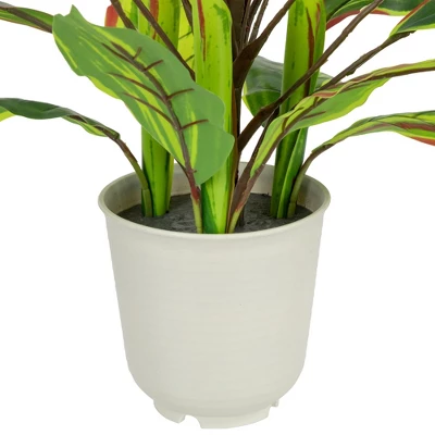 Introducing the perfect solution for those who love greenery but lack a green thumb. This artificial dracaena plant offers a lifelike appearance that is sure to impress. The large vibrant green leaves and realistic stems add a perfect touch of nature to any space. The no maintenance feature allows you to put this plant in any spot of your choice, no sunlight or water is needed. The off-white plastic pot will fit any decor style or place it in a larger pot of your choice. Whether you’re trying to add greenery to your space or a pop of color this dracaena plant is the ideal addition. Product Features:Artificial potted Dracaena plantLarge green leaves with red accentsNestled inside of an off-white pot Recommended for indoor or covered outdoor use Dimensions: 25″ high x 22″ diameter (fully fluffed)Pot: 6″ high x 6″ diameter Material(s): plastic/pvc