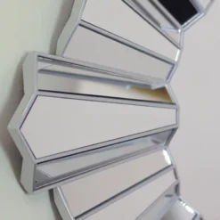 A beautifully crafted mirror is great for opening the space of any room. This silver sunburst-designed mirror is the perfect addition to any decor. Includes hanging hardware for effortless installment and easily matches several color schemes. Take your interior design to the next level.Features:Silver sunburst wall mirrorSolid circle mirror at the center Includes hanging hardware Recommended for indoor use only Frame Dimensions: 25″H x 25″W x 1.5″D Mirror Dimensions: 11.25″ diameterMaterial(s): glass/plastic