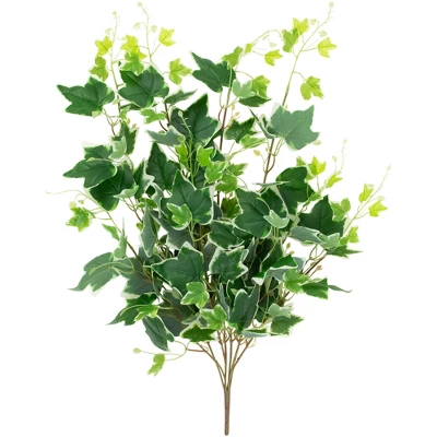 Welcome nature to your home with this artificial hanging ivy bush. This ivy provides the perfect solution for those who want some lush greenery in their home without the hassle of maintenance. This bush is perfect for adding to your floral arrangements for depth and dimension or can be placed alone for a simple design. With no need for water, sunlight, or pruning this artificial bush will provide a multitude of uses.Product Features:Variegated ivy with white around the edges Perfect addition to any floral arrangementWired vine allows you to shape the bush to your preferenceFor indoor or covered outdoor useDimensions: 30″H x 12″W x 10″D Material(s): plastic and wire