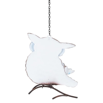 Add a touch of whimsy to your outdoor living space with this fun owl hanging. Beautiful and bright summer colors compliment any decor. Perfect for walls, fences or gazebos.Metal owl outdoor hanging decorOne-sided designComes ready to hang on a metal chain with hookDimensions: 7.75″H x 6.25″W x 2″DMaterial(s): metal