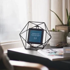 Capture some good memories with this unique photo frame. Add this frame to a bare wall in your home or a side table. It will help you to change your abode into something trendy using this adorable decor.Product Features:Decorative black hexagonal photo frameHolds one 4” x 4” photoCan be hung on a wall or this frame can sit on the table with attached easelRecommended for indoor use onlyDimensions: 8″H x 9.5″W x 1.25″DMaterial(s): metal/glass